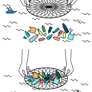 GBO's pavilion imagines scooping out plastic from the ocean with a giant dream catcher